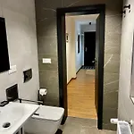 Per una maggiore comodità, l'Apartmán B2 dispone di un bagno con WC separato e una doccia. Inoltre, il bagno vanta asciugacapelli, un essiccatore e asciugamani.